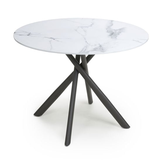 Elevate your dining area with the Furniture in Fashion Accro White Glass Top Dining Table. This stunning piece combines a sleek, White glass top with sturdy metal black legs, creating a contemporary dining table that makes a bold statement in any modern home. The minimalist design of the Accro table adds sophistication and elegance to your dining space, while its robust construction ensures durability and longevity. Perfect for both casual meals and formal gatherings, this dining table offers a stylish and functional solution for your dining needs. The neutral White glass top pairs beautifully with the black metal legs, making it a versatile choice that complements a variety of interior styles. Enjoy a sophisticated dining experience with this chic and practical addition to your home. Upgrade your dining area with the Furniture in Fashion Accro White Glass Top Dining Table, where modern design meets durability and style. FEATURES : Material : Glass And Metal Finish : White And Black This sleek and contemporary round dining table combines a tempered glass top with a stylish overlapping metal leg frame The 1m marble effect white table top comfortably seats 4 people Black powder coated metal cross-frame legs Crafted with a high-quality glass top and sturdy metal legs, this dining table is designed for long-lasting durability and stability The glass top is easy to clean and maintain, ensuring your table remains looking fresh and elegant with minimal effort Ideal for both small and large dining areas, the sleek design allows for flexible placement and complements various dcor styles Designed for easy assembly with included instructions, so you can quickly set up and enjoy your new dining table The combination of White glass and black metal adds a touch of sophistication to your dining space, making it a standout feature in your home Assembly required Available at an affordable price Images shown are for illustration purpose only DIMENSIONS :