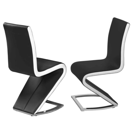 Upgrade your dining space with the sleek and stylish Aelia Black White PU Leather Dining Chairs from Furniture in Fashion. These elegant chairs are designed to bring a contemporary edge to your home, combining bold contrast with minimalist charm. The striking black and white colour combination adds a modern touch, making them the perfect addition to both classic and contemporary dining rooms. Crafted for comfort and durability, the Furniture in Fashion Aelia Dining Chairs feature cushioned PU leather seats and high backrests for superior support during meals or gatherings. Sold as a pair, these chairs are ideal for updating your dining set or adding extra seating for guests. With their strong metal legs and easy-to-clean surface, they blend functionality with enduring style. Add sophistication and everyday comfort to your dining area with the Furniture in Fashion Aelia Black White PU Leather Dining Chairs in Pair a bold, stylish seating solution designed for the modern home. FEATURES : Material : PU Leather Finish : Black, White Brand : Designed by Furniture in Fashion, offering modern, high-quality furniture solutions Black and White PU Leather Upholstery for a bold, contemporary look Comfortable Cushioned Seats with high backs for ergonomic support Easy-to-Clean Faux Leather ideal for everyday dining and busy households Sturdy Chrome Metal Legs ensure long-lasting stability and durability Perfect for Modern Dining Rooms, kitchens, or open-plan living spaces Sold as a Pair a convenient and stylish way to refresh your dining setup Flat-Packed for Easy Assembly with all necessary instructions included Available at an affordable price Images shown are for illustration purpose only DIMENSIONS : Height : 950mm Width : 360mm Depth : 560mm