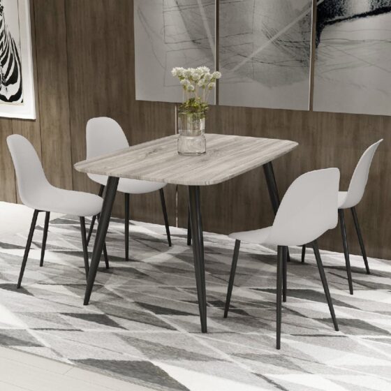 Transform your dining area with the stylish Furniture in Fashion Arta Rectangular Grey Wooden Dining Table, complemented by 4 contemporary Duo Plastic Calico Chairs. This dining set is designed to bring a modern touch to your home, combining functionality with a chic aesthetic. The elegant grey wooden finish of the table provides a warm, inviting atmosphere, while the sleek Calico chairs add a striking contrast, making it a perfect centrepiece for family meals or gatherings with friends. The Arta Rectangular Dining Table is thoughtfully designed to fit seamlessly into a variety of spaces, from cozy apartments to spacious dining rooms. With its sturdy construction, this set is built to withstand everyday use, making it ideal for both casual dining and special occasions. Enjoy a perfect blend of style and practicality with this modern dining set. Enhance your dining experience with the Furniture in Fashion Arta Rectangular Grey Wooden Dining Table with 4 Duo Plastic Calico Chairs, where modern elegance meets everyday practicality for todays stylish living. FEATURES : Dining Table Material : Wooden Dining Table Finish : Grey Oak Dining Chair Material : Plastic Dining Chair Finish : Calico The chic grey finish adds a contemporary flair to your dining space, suitable for various decor styles Provides ample surface area for meals, crafting, or working, making it a versatile addition to your home Made from high-quality plastic, these chairs offer comfort and durability while maintaining a stylish appearance Built with premium materials to ensure long-lasting stability and reliability for everyday use Perfect for smaller dining areas, kitchens, or open-plan living spaces, maximizing functionality without sacrificing style The smooth surfaces of the table and chairs allow for effortless cleaning, ideal for busy households This dining set can serve multiple purposes, from dining and entertaining to casual workspaces Available at an affordable price