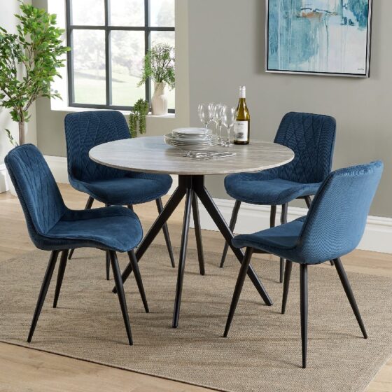Arta Round Grey Wooden Dining Table 4 Blue Diamond Chairs