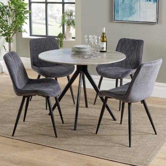 Arta Round Grey Wooden Dining Table 4 Dark Grey Diamond Chairs