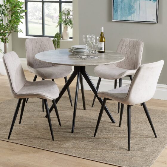 Arta Round Grey Wooden Dining Table 4 Natural Diamond Chairs