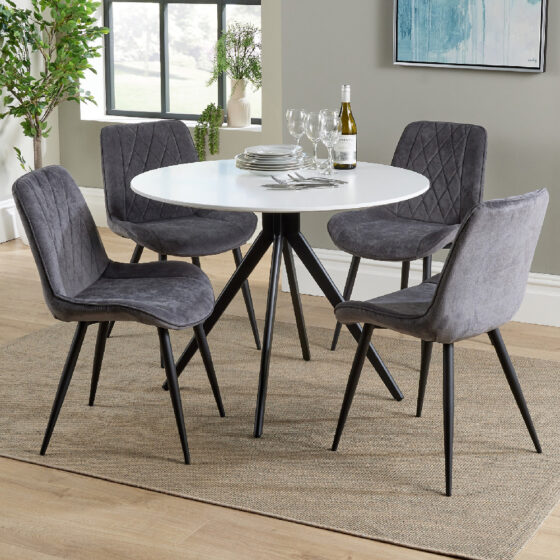 Arta Round White Wooden Dining Table 4 Dark Grey Diamond Chairs