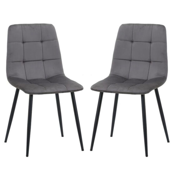 Avenel Grey Fabric Dining Chairs With Black Legs In Pair