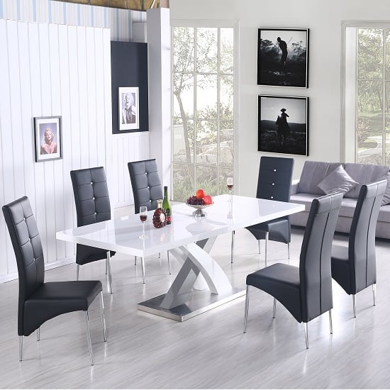 Axara Large Extending Grey Dining Table 6 Vesta Black Chairs