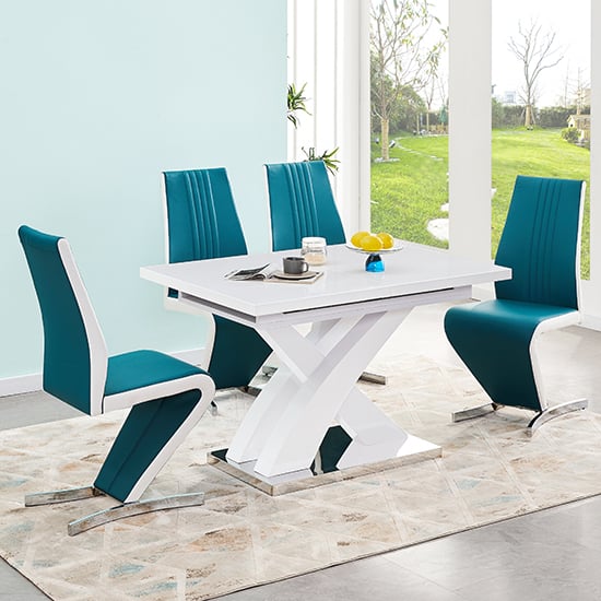 Axara Small Extending White Dining Table 4 Gia Teal White Chairs