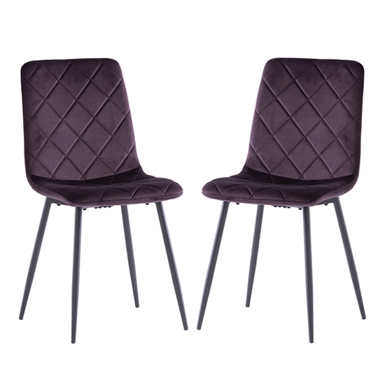Basia Aubergine Velvet Fabric Dining Chairs In Pair