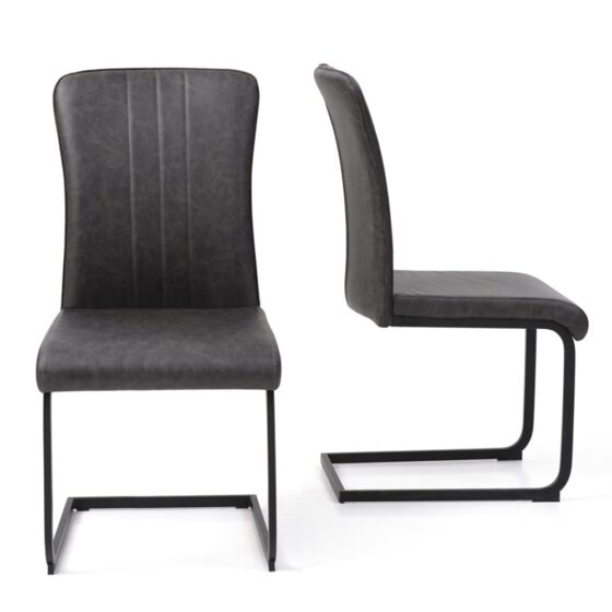Enhance your dining experience with the timeless elegance of the Furniture in Fashion Bolivia Antique Grey PU Leather Dining Chairs Pair. Blending classic charm with modern comfort, these beautifully designed chairs feature a vintage inspired antique grey PU leather finish that brings a warm, sophisticated touch to any dining room or kitchen. The sleek silhouette and premium detailing make them a versatile choice for both traditional and contemporary interiors. Engineered for comfort and built to last, the Bolivia Dining Chairs offer excellent support with their gently curved backrests and plush padded seats. The sturdy black metal legs not only provide durability but also add a stylish industrial contrast to the soft leather look upholstery. Whether you’re hosting guests or enjoying family meals, these chairs crafted by Furniture in Fashion, one of the UKs leading furniture brands combine style, function and lasting quality. FEATURES : Material : PU Leather, Metal Finish : Antique Grey, Black Antique Grey PU with UK FR Foam//Matt Black Metal Frame Vintage inspired finish adds warmth, texture and timeless appeal to your dining space Curved back supports proper posture and comfort during meals Cushioned seating ensures a comfortable dining experience for extended periods Strong and stable frame offers long lasting use and a modern industrial touch Sold as a set of two perfect for upgrading your dining set or furnishing a small dining area Easy to clean PU leather is ideal for everyday dining and busy households Fits well in both spacious and smaller dining spaces without compromising on style From Furniture in Fashion, known for high quality, design led home furnishings Available at an affordable price Images shown are for illustration purpose only DIMENSIONS : Height : 98cm Width : 45cm Depth : 60cm