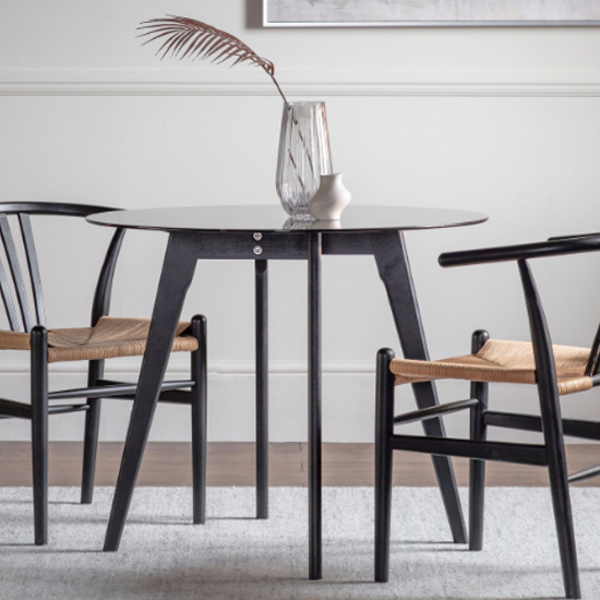 Brix Smoked Glass Round Dining Table In Black Oak Base