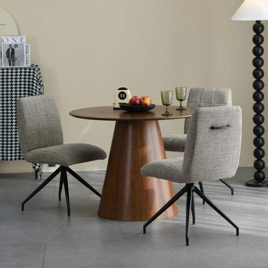 Cairns Walnut Wooden Round Dining Table 4 Mestre Natural Chairs