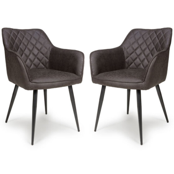 Add timeless style and exceptional comfort to your dining space with the Furniture in Fashion Caribou Grey Fabric Carver Dining Chair Set of 2. Upholstered in soft Grey fabric, these dining chairs offer a warm, vintage-inspired look that pairs effortlessly with rustic, industrial, and modern farmhouse interiors. The gently curved backrest, integrated armrests, and plush seat cushioning ensure a relaxed and supportive dining experience. Crafted with quality in mind, the Caribou carver chairs feature sturdy black metal legs that provide lasting strength and stability. The sleek, open-frame design adds a modern edge, while the classic fabric finish brings texture and charm to your dining room. Whether you’re hosting dinner parties or enjoying everyday meals, these chairs deliver both elegance and ergonomic support. The Furniture in Fashion Caribou Grey Fabric Carver Dining Chair In Pair is a perfect blend of traditional charm and modern functionality. Designed for comfort and built to last, these elegant chairs make a stylish addition to any dining setting. Transform your space with warmth, texture, and timeless appeal. FEATURES : Material : Fabric, Metal Finish : Grey, Black Nubuck style fabric Brand : Furniture in Fashion Renowned for stylish and high-quality home furniture Set of 2 Carver Chairs : Ideal for formal dining rooms, kitchens, or as accent chairs Grey Fabric Upholstery : Soft and durable with a vintage-inspired aesthetic Comfortable Armrests : Built-in arms for enhanced support and a relaxed seating position Ergonomic Curved Backrest : Offers excellent lumbar support and seating comfort Sturdy Black Metal Legs : Provides strength and a sleek, contemporary contrast Versatile Design : Complements rustic, industrial, and modern home decor styles Compact Yet Stylish : Space-saving design ideal for smaller dining areas or apartments Available at an affordable price Images shown are for illustration purpose only DIMENSIONS : Heig