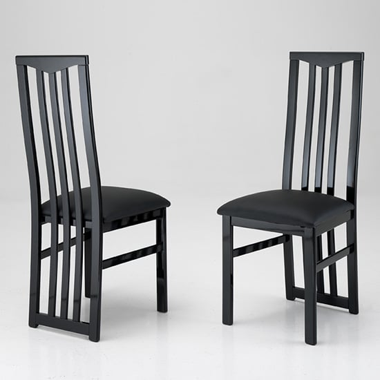Chair in glossy Black lacquered beech, seat covered in Black eco-leather chair in beechwood Black high gloss laquered, seat coating in Black pu leather. FEATURES : Material : MDF (Medium Density Fibreboard), Faux Leather Seat Finish : Black Matching furniture available Available at an affordable price Most classy and unique piece of furniture Images shown are for illustration purpose only DIMENSIONS : Height : 106cm Width : 48cm Depth : 45cm