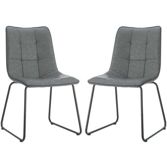 Cumming Grey PU Leather Dining Chairs With Black Legs In Pair