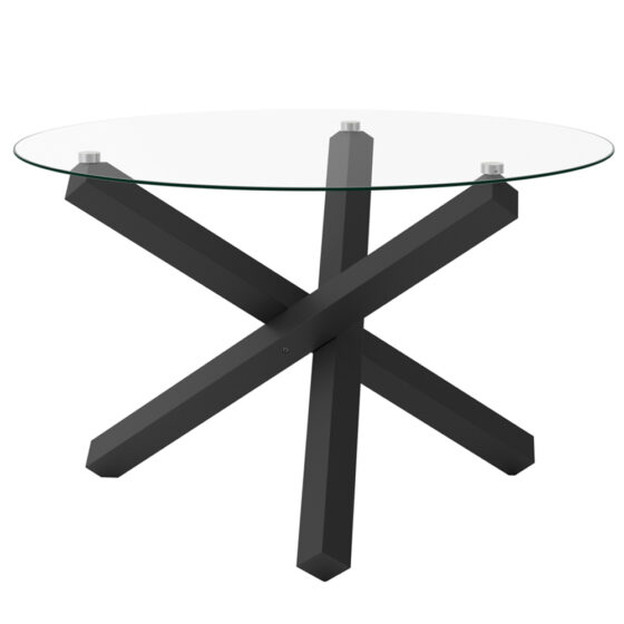 Make a bold statement in your dining space with the elegant and contemporary Furniture in Fashion Cupric Clear Glass Dining Table With Black Metal Legs. Featuring a stunning clear glass table top and striking black metal legs, this stylish dining table creates a perfect balance of modern sophistication and everyday practicality. Designed to suit a wide range of interior styles, from industrial to minimalist and modern homes, the Cupric dining table offers both visual lightness and exceptional strength. Its spacious glass surface provides ample room for meals, entertaining guests, or family gatherings, making it a stylish and functional centrepiece for any dining area. The Furniture in Fashion Cupric Clear Glass Dining Table With Black Metal Legs is a perfect combination of modern elegance, durability, and everyday functionality. With its sleek glass top and sturdy metal base, it adds a refined, contemporary touch to any dining space. FEATURES : Material : Clear Glass, Metal Finish : Black The Cupric Dining Table combines a clear glass top with matte black metal legs, delivering a sleek, classic design with a contemporary finish that complements modern dining spaces Premium clear tempered glass table top for a sleek, modern look Strong black metal legs for excellent stability and support Contemporary design ideal for modern and industrial interiors Spacious table top perfect for family dining and entertaining Durable construction for long-lasting everyday use Easy-to-clean glass surface for low-maintenance upkeep Bold contrast between glass top and black legs for standout appeal Available at an affordable price Images shown are for illustration purpose only DIMENSIONS : Height : 750mm Width : 1200mm Depth : 1200mm