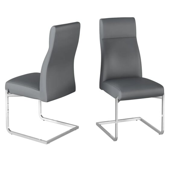 Dania Grey Faux Leather Dining Chairs With Chrome Legs In Pair
