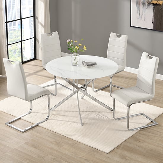 Daytona Round Diva Glass Dining Table 4 Petra White Chairs