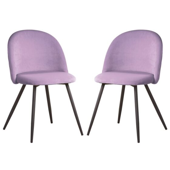 Add a bold splash of contemporary style to your dining space with the Furniture in Fashion Earlville Fabric Purple Dining Chairs. Designed with a modern aesthetic and crafted for everyday comfort, these vibrant Purple chairs make an instant impact. Whether you’re updating your dining area, kitchen or studio apartment, this stylish pair combines striking design with practical function. Featuring soft fabric upholstery and sleek Wooden legs, the Earlville dining chairs are as durable as they are elegant. The gently contoured backrest and cushioned seat provide exceptional support, making them ideal for long dinners or casual gatherings. Brought to you by Furniture in Fashion, one of the UKs largest online furniture retailers, this set guarantees quality and sophistication in one affordable package. FEATURES : Material : Textile, Wood Finish : Purple, Black Eye catching Purple fabric adds a pop of colour and modern flair to any dining or living space Gently curved back and padded seat ensure lasting comfort and support Strong black Wooden legs provide excellent stability and a sleek, contemporary finish Perfect for modern homes, apartments, dining rooms or kitchen areas High quality fabric upholstery is easy to clean and built to last Comes with clear instructions for a hassle free setup experience Great value includes two matching chairs in one convenient set Manufactured by Furniture in Fashion, known for stylish, affordable and reliable home furniture Available at an affordable price Images shown are for illustration purpose only DIMENSIONS : Height : 80cm Width : 45cm Length : 43cm