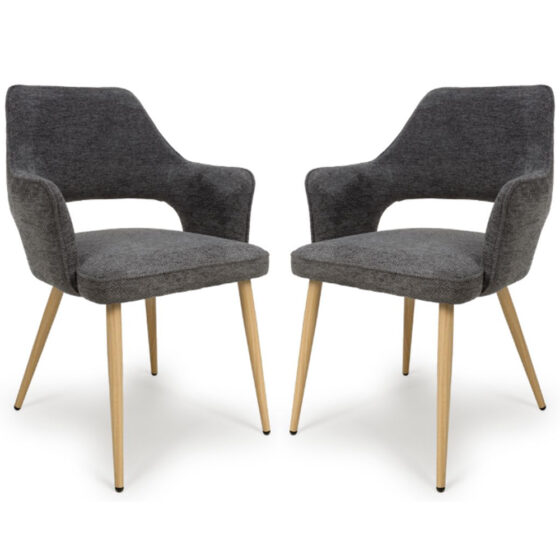 Eureka Dark Grey Fabric Dining Chairs With Oak Legs In Pair