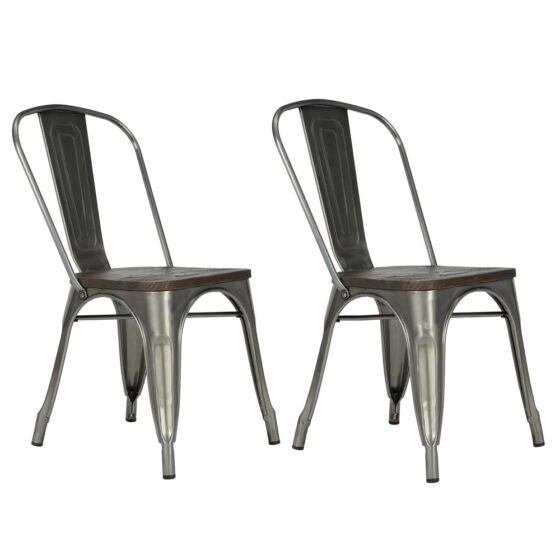 Add industrial charm and rustic elegance to your dining area with the Findlay Antique Wooden Dining Chairs With Metal Frame from Furniture in Fashion. This stylish pair of chairs blends the warmth of antique-finished wood with the strength and character of a black metal frame, making them an ideal addition to both modern and vintage-inspired interiors. Perfect for everyday dining or casual gatherings, the Findlay chairs offer comfort, durability, and timeless appeal. Their ergonomic design ensures supportive seating, while the sturdy metal legs provide long-lasting stability. Whether paired with a matching table or used to complement your existing decor, these chairs bring style and practicality to any dining space. Stylish, sturdy, and full of character, the Furniture in Fashion Findlay Antique Wooden Dining Chairs With Metal Frame are the perfect blend of industrial style and everyday functionality. Add them to your home for a distinctive and comfortable dining experience. FEATURES : Material : Wooden, Metal Finish : Antique Enchant your guests with the Findlay Metal Dining Chair with wood seating from DHP Hints of its antique sleek style peek out from the distressed wood and antique metal finish The steel frame and wood seat is extra sturdy for years of comfort for everyone This chair with a bistro style design is perfect for your dining room, as a spare chair and even in your home office Compact and lightweight, the Findlay is stackable for easy storage and comes in a set of 2 Dining chair with bistro style design perfect for your dining table and even in your home office to give it a rustic flair Sturdy steel frame with plastic footcaps to prevent damage to floor This product is designed for home and commercial use Perfect for restaurants, cafs, and more Durability : Strong metal construction ensures lasting stability and support Comfort : Ergonomically designed seat and backrest for added comfort Versatile Look : Suitable for dinin