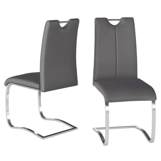Gable Grey Faux Leather Dining Chairs With Chrome Legs In Pair