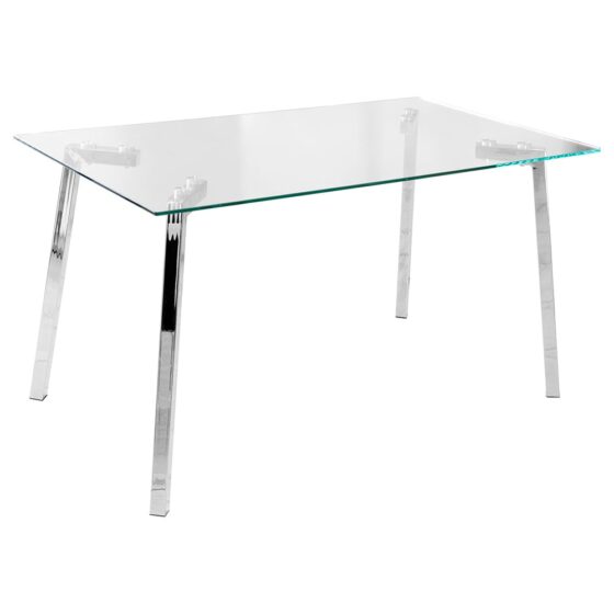 Helena Clear Glass Top Rectangular Dining Table With Chrome Legs