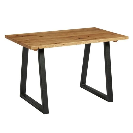 Bring timeless elegance and modern functionality into your dining space with the Furniture in Fashion Hesperia Small Wooden Dining Table in Character Oak. Designed with precision and sophistication, this compact table beautifully combines rustic oak charm with contemporary craftsmanship. Its natural wood grain and character oak finish add warmth and authenticity, making it a perfect centrepiece for family meals and gatherings. Ideal for smaller dining areas, apartments, or cosy kitchen spaces, the Hesperia table balances style with practicality. Its sturdy wooden construction ensures durability, while its sleek design effortlessly blends with both modern and traditional interiors. Whether its everyday dining or entertaining guests, this table enhances your space with elegance and comfort. The Furniture in Fashion Hesperia Small Wooden Dining Table in Character Oak is a versatile and stylish addition to your dining space. Its natural oak beauty, durable build, and space-saving design make it the perfect choice for modern living. FEATURES : Material : Wooden, Metal Finish : Character Oak, Black Solid oak table tops in four colours Sturdy and hard-wearing Heat and scratch-resistant table top Ultra stable and durable Suitable for indoor use The Hesperia table features a strong, sturdy, solid oak table top in a finish that protects against heat and scratches The perfectly designed A-frame ensures extra stability and comes in a finish to complete the industrial look This table would do well in heavily used areas Shape : Rectangular top with smooth edges for a modern rustic appeal Capacity : Comfortably seats 24 people, ideal for family or intimate dining Stability : Strong wooden legs provide robust support and long-lasting use Available at an affordable price Images shown are for illustration purpose only DIMENSIONS : Height : 74. 2cm Width : 120cm Depth : 70cm