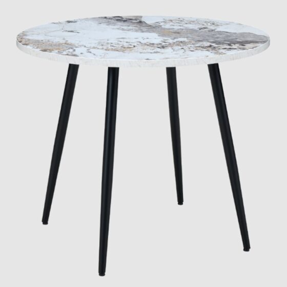 Bring modern elegance and space-efficient design to your dining area with the Hobart Wooden Round Dining Table from Furniture in Fashion. Featuring a stunning Pandora Marble Effect finish, this round table adds a luxurious and contemporary touch to any room. Its compact circular design is perfect for smaller dining spaces while still offering a statement-making presence that enhances your interior decor. Crafted with high-quality wooden materials and finished in a high-gloss marble effect, the Furniture in Fashion Hobart Round Dining Table blends functionality with sophisticated style. Ideal for everyday dining or intimate gatherings, this table is both practical and visually appealing a great choice for apartments, kitchens or modern dining rooms. FEATURES : Material : MDF Finish : Pandora Marble Effect 25mm MDF Board Sturdy leg frame 1. 2mm thick steel legs with soft floor protectors at the bottom Scratch & Heat Resistant table top Seats up to 4 people The Round Marble Dining Table is a refined, practical centrepiece for smaller dining spaces Featuring a smooth marble-effect top, it brings an elegant, modern aesthetic combined with a durable, easy-to-maintain surface The sleek, matt black powder-coated legs, subtly angle outward, adding a contemporary edge to the pieces aesthetic Designed to seat up to four people, this table is perfect for stylish everyday dining in modern interiors Thoughtfully crafted from durable materials, it supports sustainable living while enhancing your space Available at an affordable price Images shown are for illustration purpose only DIMENSIONS : Height : 750mm Width : 900mm Depth : 900mm