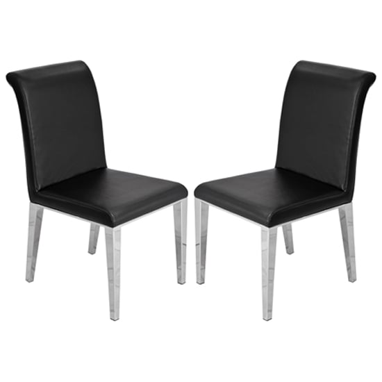 Kirkland Black Faux Leather Dining Chairs In Pair