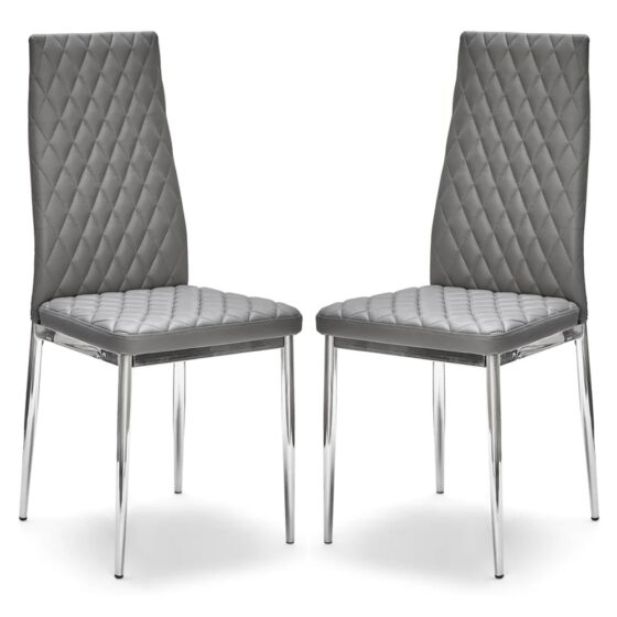 Laurel Grey Faux Leather Dining Chairs With Chrome Frame In Pair
