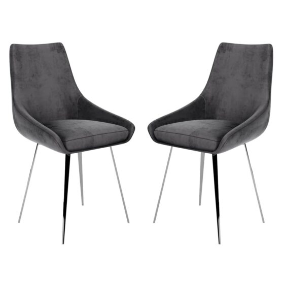 Levant Dark Grey Velvet Dining Chairs In Pair
