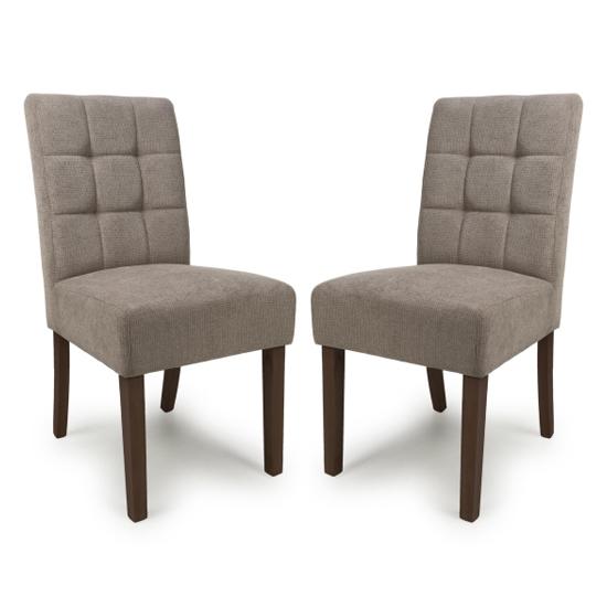 Mendoza Light Brown Fabric Dining Chairs With Walnut Legs In Pair