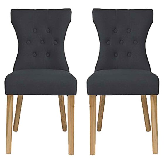 Elevate your dining experience with the Furniture in Fashion Nipas Fabric Dining Chairs With Wooden Legs In Pair – Grey, where timeless design meets everyday comfort. These beautifully upholstered chairs feature soft grey linen-style fabric that effortlessly enhances any dcor from contemporary kitchens to classic dining rooms. Perfectly balanced between modern elegance and cosy seating, the Nipas dining chairs add a touch of sophistication to your home. Designed with both style and durability in mind, this pair of dining chairs combines premium fabric upholstery with sturdy wooden legs for long-lasting use. Whether youre hosting family dinners or casual gatherings with friends, these chairs provide exceptional comfort and lasting quality that impresses guests and enriches your dining area. FEATURES : Material : Solid Wood, Fabric Finish : Grey, Oak Elegant grey fabric upholstery, soft linen-style finish adds a neutral yet refined look to any dining space Sold as a set of two, offering a coordinated and complete seating solution Supportive oak-coloured legs ensure stability and a classic aesthetic Ergonomically designed seats for relaxed dining and extended conversations Classic silhouette with a modern twist fits seamlessly into a variety of dcor styles Ideal for dining rooms, kitchens, breakfast nooks, or additional guest seating Neutral grey tone and refined lines elevate your interior aesthetic a great choice for both everyday meals and special occasions Available at an affordable price Images shown are for illustration purpose only DIMENSIONS : Height : 920mm Width : 460mm Depth : 650mm