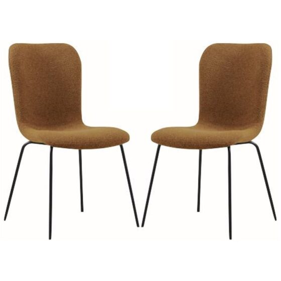 Elevate your dining experience with the refined elegance of the Ontario Tan Fabric Dining Chairs With Black Legs from Furniture in Fashion. Designed to bring sophistication and comfort to any dining setting, this stylish pair of chairs features soft Tan fabric upholstery and sleek black legs for a striking contrast that complements both modern and classic interiors. Whether you’re hosting dinner parties or enjoying everyday meals, the Ontario dining chairs offer superior comfort with their cushioned seats and gently curved backrests. The sturdy construction and timeless design make them a perfect addition to any dining room, kitchen, or open-plan living space. The Ontario Tan Fabric Dining Chairs With Black Legs In Pair by Furniture in Fashion are the perfect blend of style, comfort, and durability. Whether upgrading your dining area or furnishing a new home, these elegant chairs offer a timeless touch that enhances any space. FEATURES : Material : Fabric, Metal Finish : Tan, Black Set of 2 Dining Chairs Ideal for pairing with a range of dining tables Tan Fabric Upholstery Soft, neutral tone adds elegance and warmth Black Metal Legs Strong, stable, and stylish for a contemporary look Padded Seat and Backrest Provides long-lasting comfort for extended seating Curved Back Design Offers ergonomic support and enhances visual appeal Durable Frame Construction Built to withstand everyday use Versatile Aesthetic Complements modern, traditional, or transitional decor Low Maintenance Fabric Easy to clean and maintain its fresh look Available at an affordable price Images shown are for illustration purpose only DIMENSIONS : Height : 88cm Width : 60cm Depth : 49cm