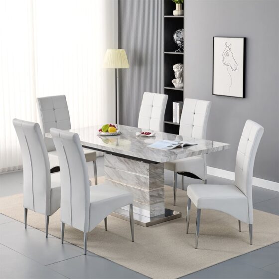 Parini Small Extending Magnesia Dining Table 6 Vesta White Chairs