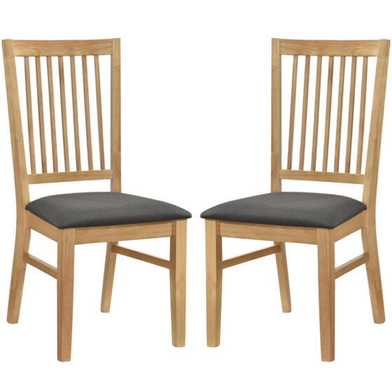 Rochelle Light Oak Wooden Dining Chairs With Fabric Seat – Pair