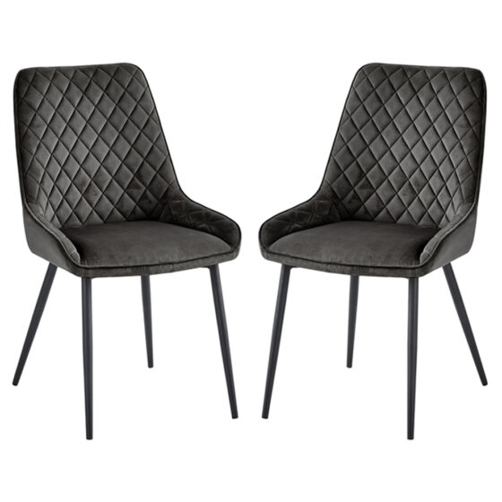 Sanford Gun Metal Grey Velvet Dining Chairs In Pair