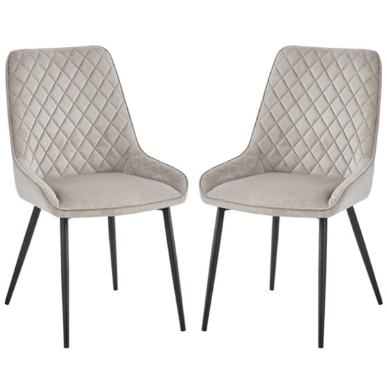 Sanford Quilted Mink Velvet Dining Chairs In Pair