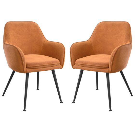 Tampere Burnt Rust Velvet Dining Chairs With Black Legs In Pair
