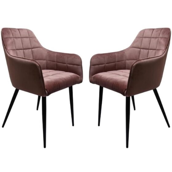 Add a touch of luxury and elegance to your dining area with the Furniture in Fashion Vernal Blush Velvet Dining Chairs with Black Legs in Pair. Upholstered in soft blush pink velvet, these chairs create a chic and modern statement while offering ultimate comfort. Their plush padded seats and curved backs make them perfect for everyday dining as well as entertaining guests. The Vernal Velvet Dining Chairs by Furniture in Fashion combine style with durability, making them an excellent choice for any contemporary or classic dining room. Featuring sleek black legs for a striking contrast, this pair of dining chairs brings sophistication, comfort, and functionality together in one elegant design. The Furniture in Fashion Vernal Blush Velvet Dining Chairs with Black Legs in Pair are a chic and versatile choice, bringing comfort and refined elegance to any dining space. FEATURES : Material : Velvet, Metal Finish : Blush, Black Set of 2 stylish dining chairs from Furniture in Fashion Upholstered in soft blush pink velvet for a luxurious look and feel Sturdy black legs provide strength and a modern contrast Comfortable padded seat and curved backrest for enhanced support Elegant design suitable for both contemporary and classic interiors Perfect for dining rooms, kitchens, or as accent chairs in living spaces Durable construction ensures long-lasting quality and everyday use A perfect blend of style, comfort, and sophistication Available at an affordable price Images shown are for illustration purpose only DIMENSIONS : Height : 865mm Width : 565mm Depth : 575mm